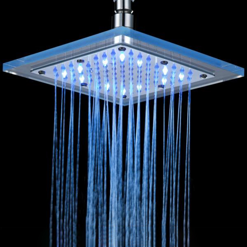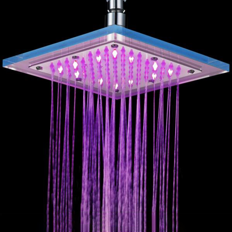 When water flows down, the LED will light instantly and automatically, the LED color will change gradually and automatically.